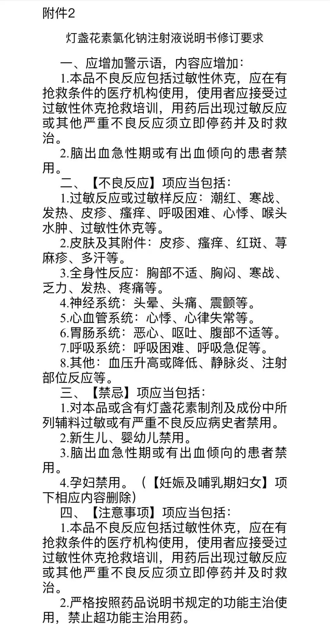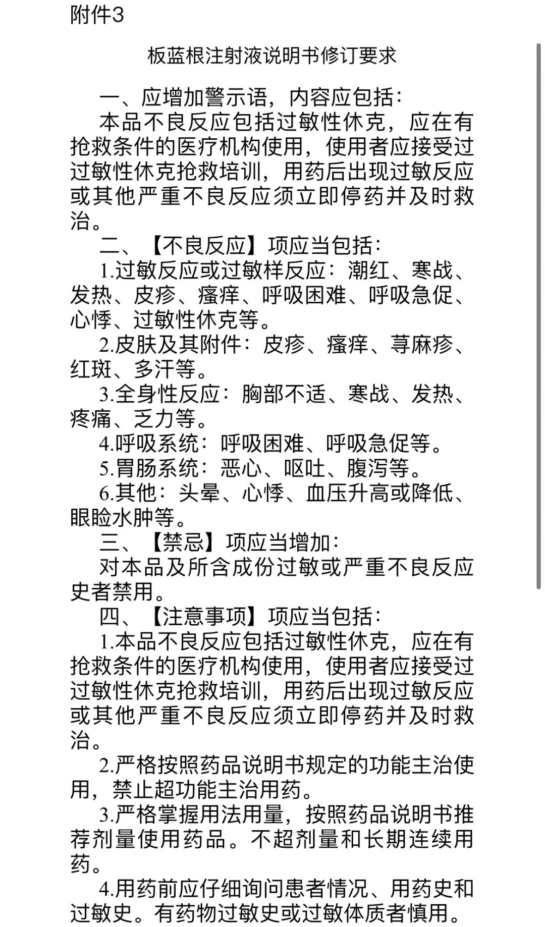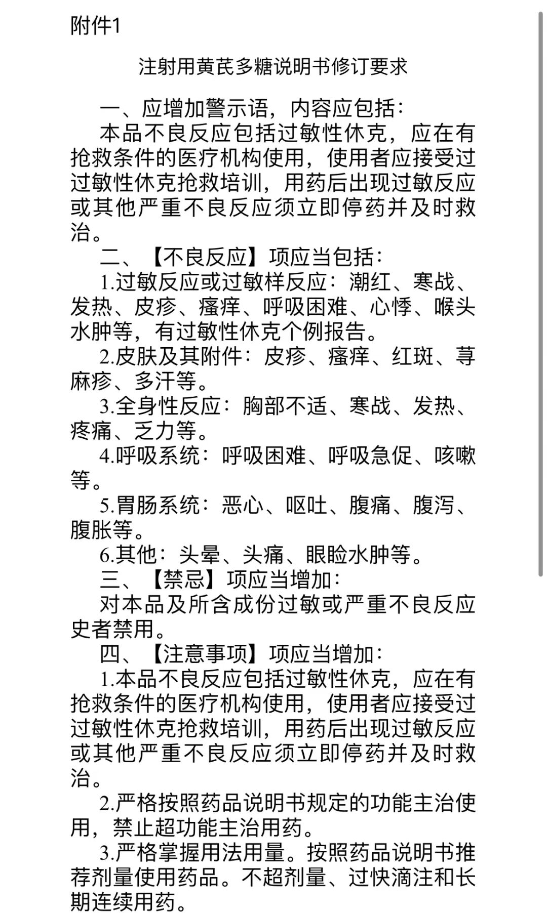 国家药监局关于修订注射用黄芪多糖、灯盏花素氯化钠注射液和板蓝根注射液等药品说明书的公告